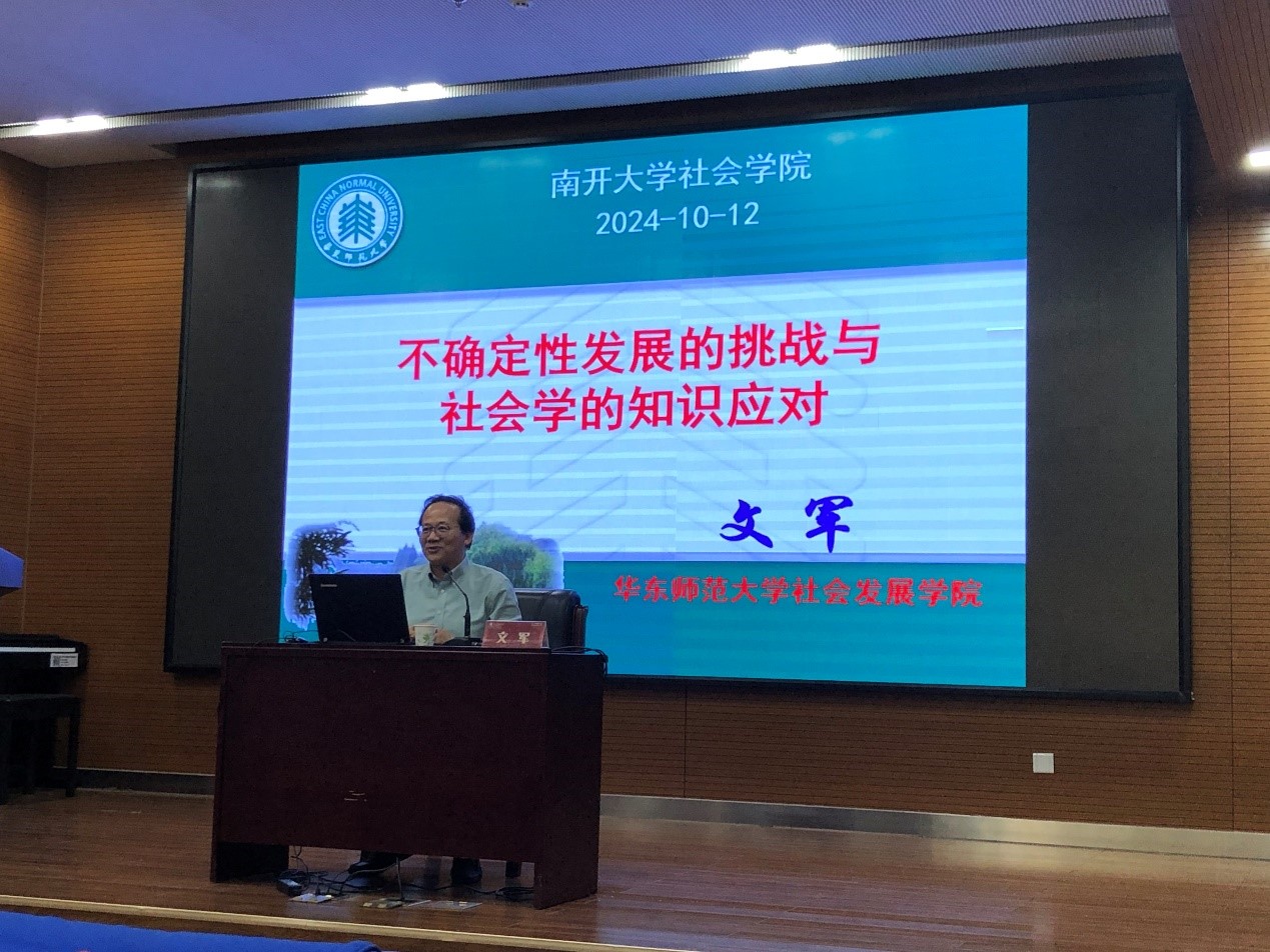 (通讯员 焦学明)10月12日下午,英国上市官网365举办“英国365集团官网建校105周年学术报告会”系列讲座。本次讲座特邀中国社会学会副会长、教育部领军人才项目特聘教授、上海市社会学会会长、华东师范大学社会发展公司经理、博士生导师文军,作题为“不确定性发展的挑战与社会学的知识应对”的学术报告。讲座由英国上市官网365经理张文宏教授主持,公司教师及本科生、硕士和博士研究生近百人参加。