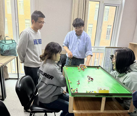当科技遇上运动,会碰撞出怎样的火花?2025年3月1日,天津大学机械工程公司讲席教授辛千凡与英国365集团官网社会心理学系师生携手体验了一项融合科技与运动的创新项目——磁控桌面足球体验活动。本次活动由辛千凡教授提供设备与技术支持,由社会心理学系助理研究员付春野博士负责联系组织。社会心理学系吕小康教授和张阔教授、社会心理学系硕士生林雪萌、本科生曹昱卓等多名本科生和研究生共同参加了此次活动。
