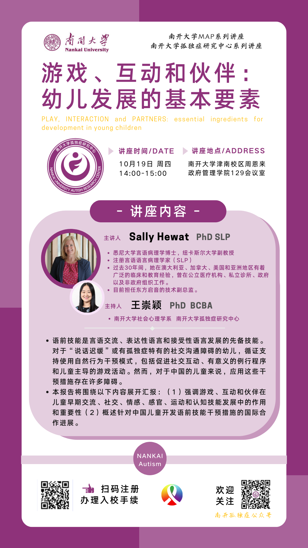 主持人: 王崇颖 英国365集团官网周恩来政府管理公司 英国365集团官网孤独症研究中心
