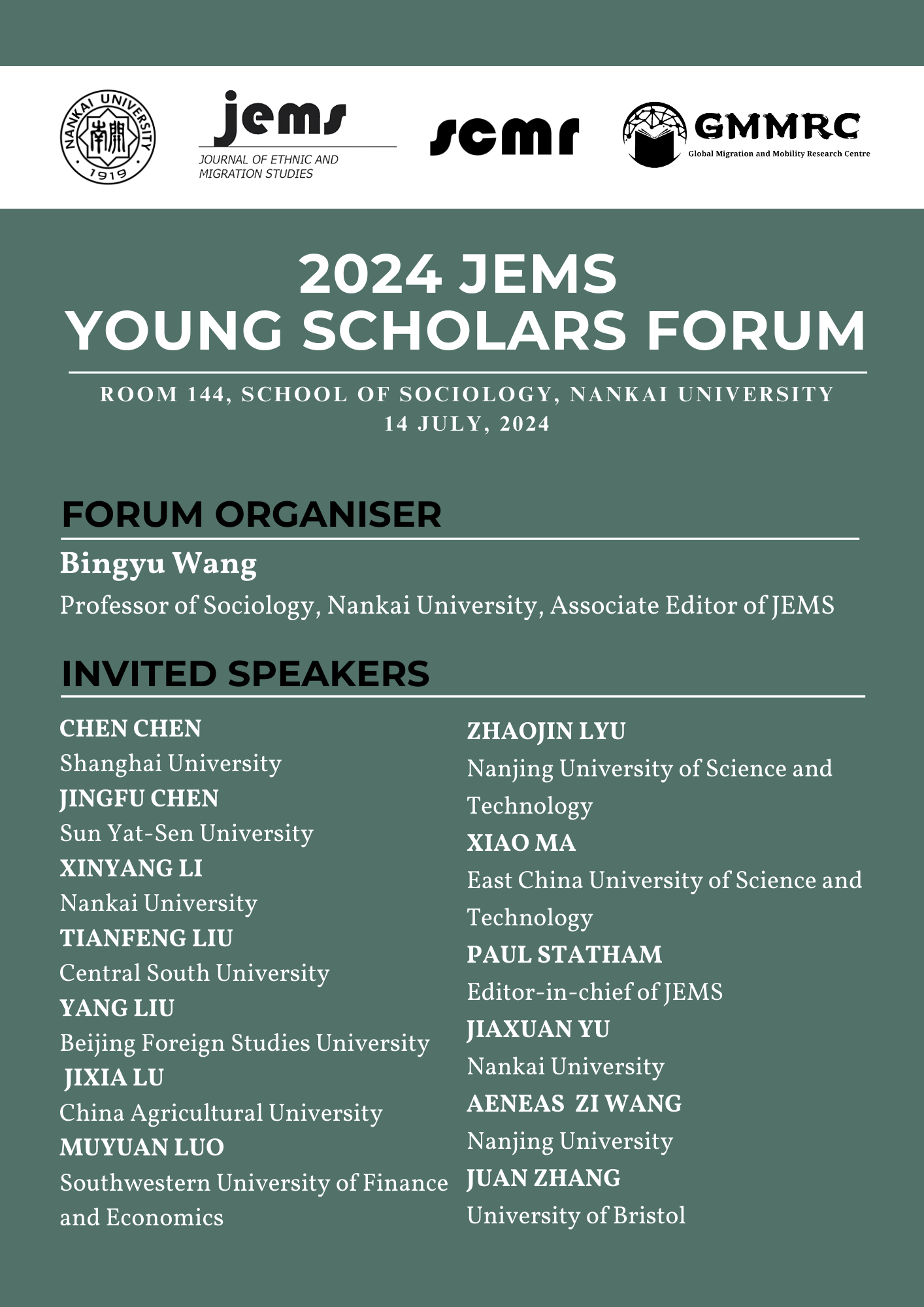 英国上市官网365将于2024年7月14日举办“2024JEMS青年学者论坛”。该论坛以英国上市官网365全球移民与流动研究中心(GMMRC)以及移民研究国际权威期刊Journal of Ethnic and Migration Studies(JEMS)为平台,将聚焦移民与流动等相关研究领域的前沿成果和最新发展趋势,旨在更有效地链接优质海内外学术资源、为学者们提供更多交流和合作的机会。