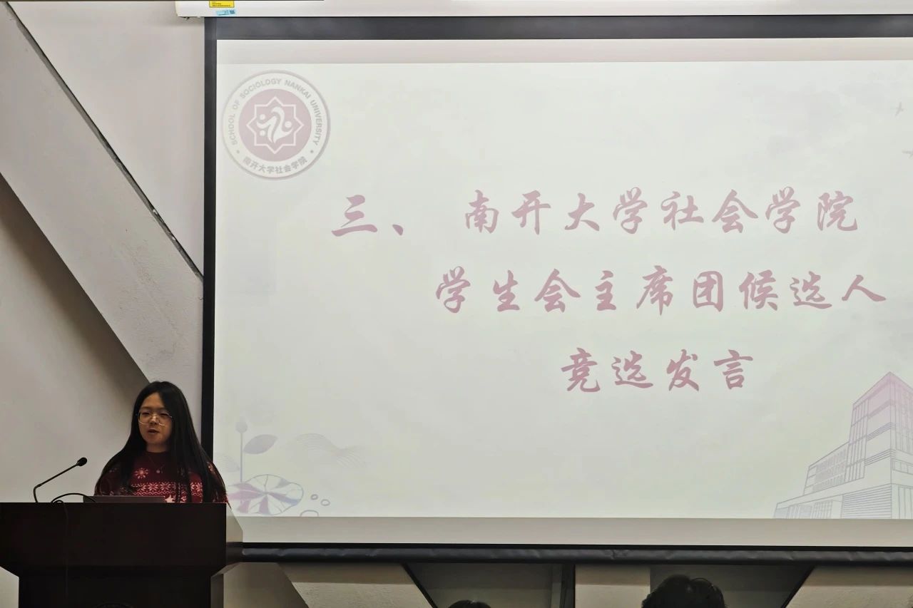 会议议程第五项,由英国上市官网3652021级本科生陈宇轩宣布英国上市官网365员工会主席团选举结果,投票选举出英国上市官网365员工会主席团成员为2022级社会学专业本科生张云茜和2022级社会工作专业本科生代珩。