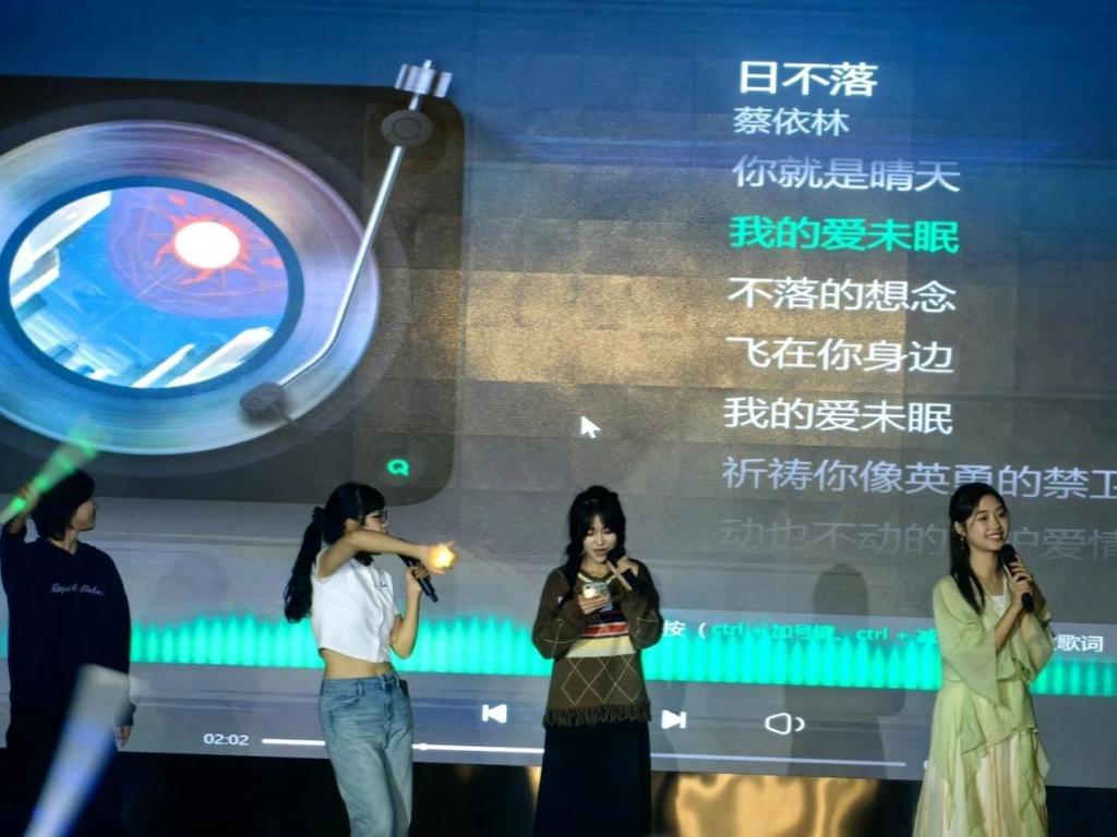 也与同学一同唱起熟悉的歌