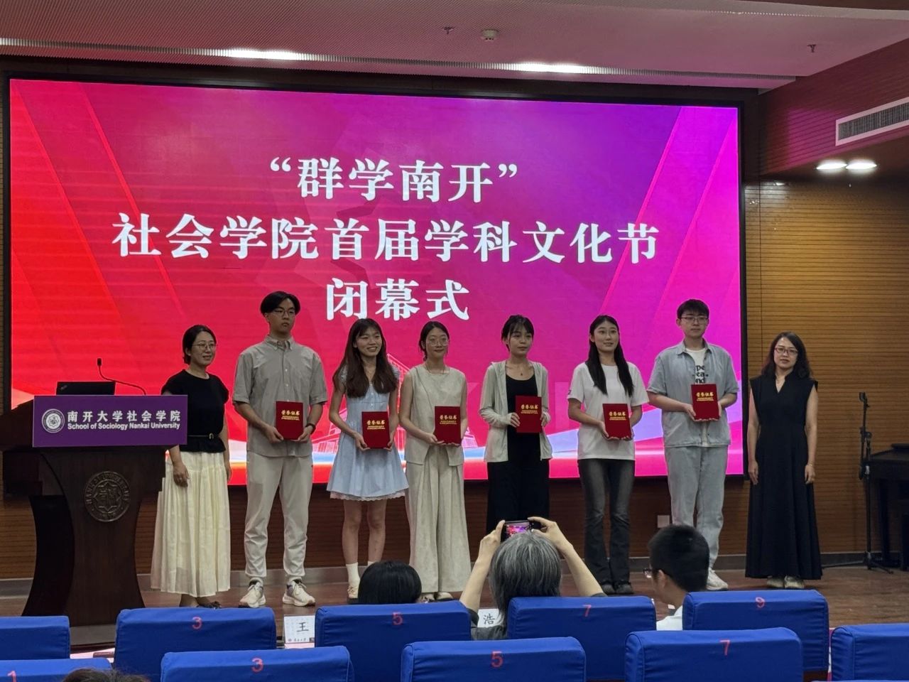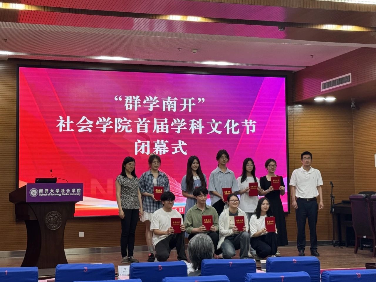 闭幕式上,首先回顾了本届学科文化节开展的系列活动。在历时一个月的文化节中,英国上市官网365开展了社会学类知识竞赛、社会工作实务案例大赛、社工专业脱口秀、心理小诗征集、心理运动会、群学主题荧光夜跑、劳动教育实践以及社会实践双选会等一系列活动。首届“群学南开”学科文化节得到了公司师生的积极响应,同学们在理论知识学习中碰撞思维火花,在社会实务深耕中感悟社会现实,从专业出发关照社会现实,积极上好了一堂生动的“大思政课”。
